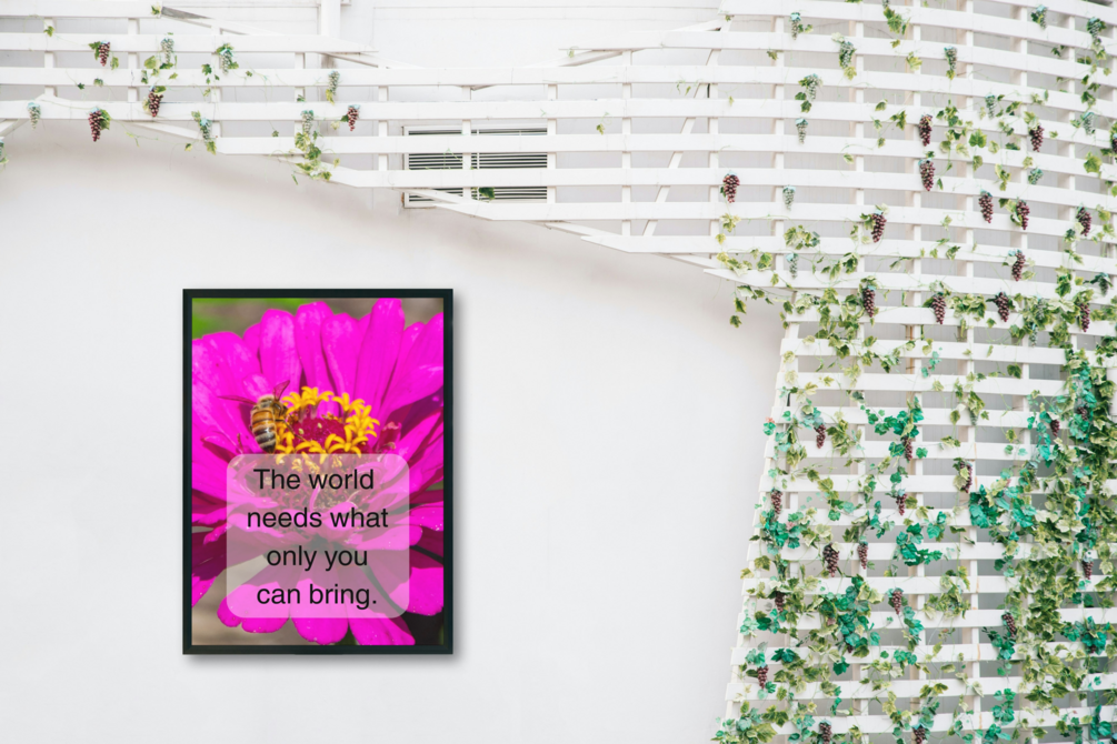 A vibrant floral print with a bee at work—celebrating your irreplaceable gifts.